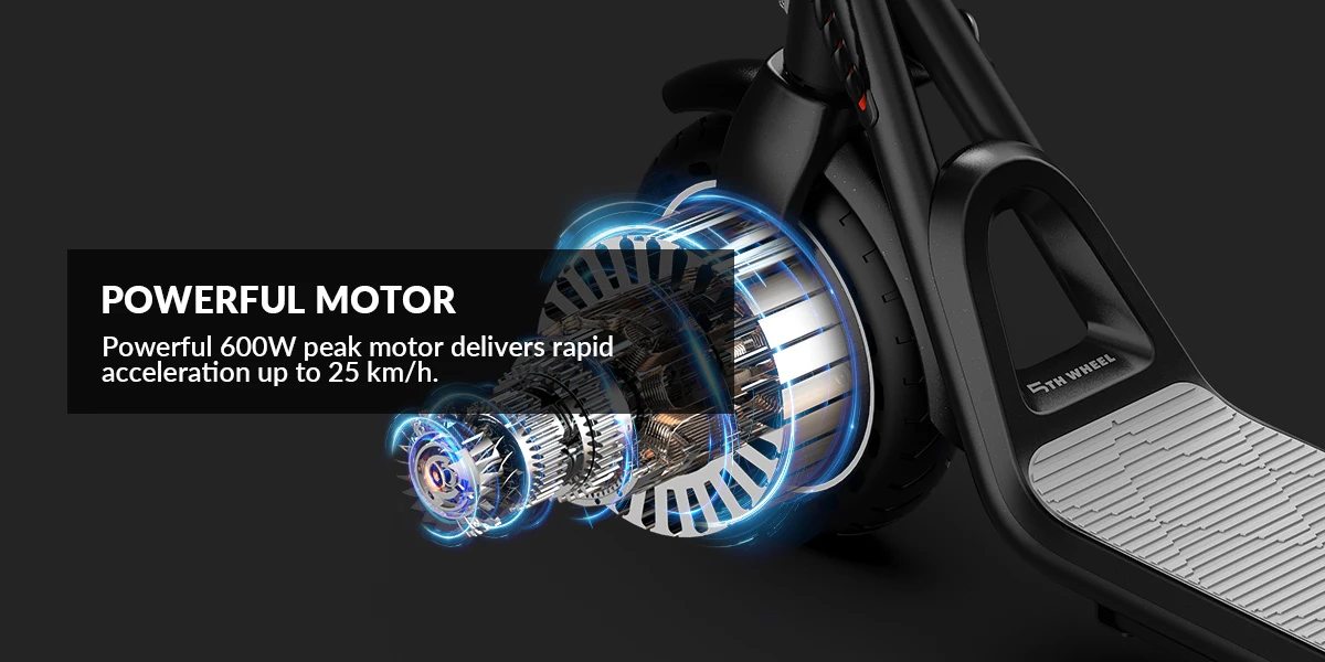 Supera pendientes pronunciadas de hasta un 15 % y deslízate por las calles de la ciudad con un robusto motor de 600 W de potencia máxima. Las llantas sólidas de 8,5 pulgadas y el amortiguador trasero se combinan para ofrecer una conducción suave y estable en superficies irregulares, soportando a ciclistas de hasta 120 kg (265 lb).