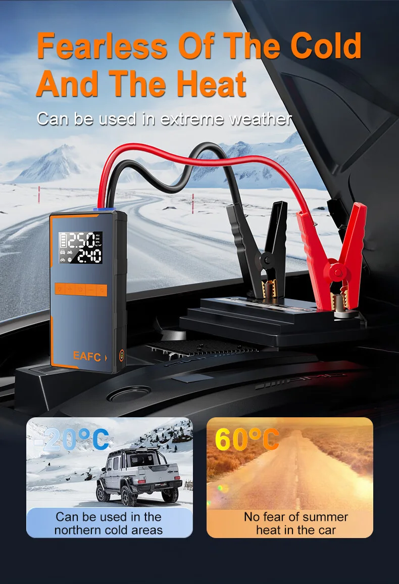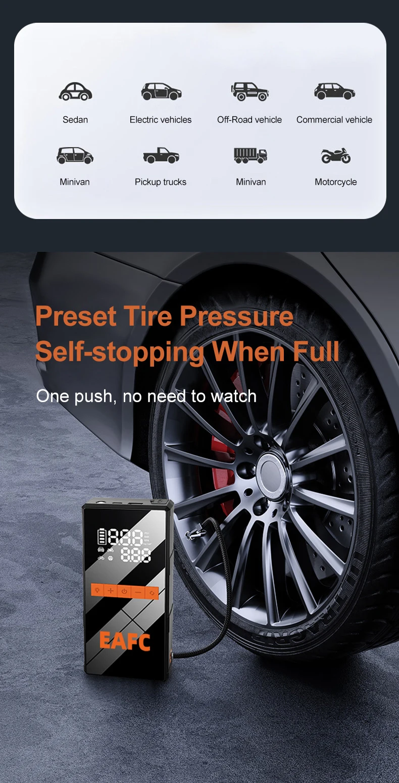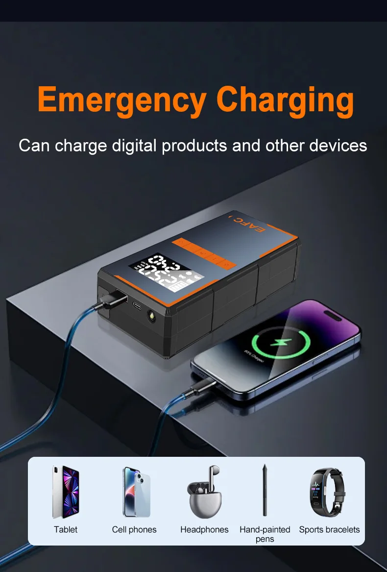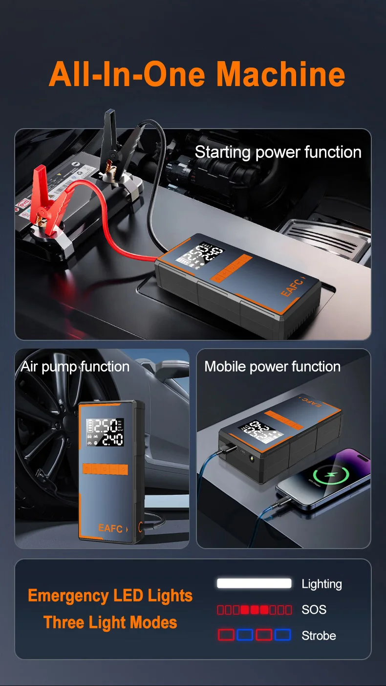 EAFC 4-in-1 Car Emergency Jump Starter 1200A Peak Current 150PSI Air Pump Tire Inflator Power Bank Booster Multipurpose Tool
