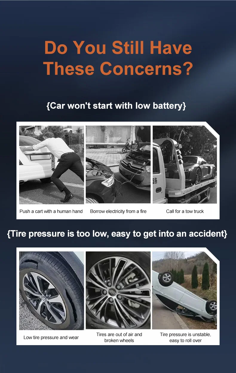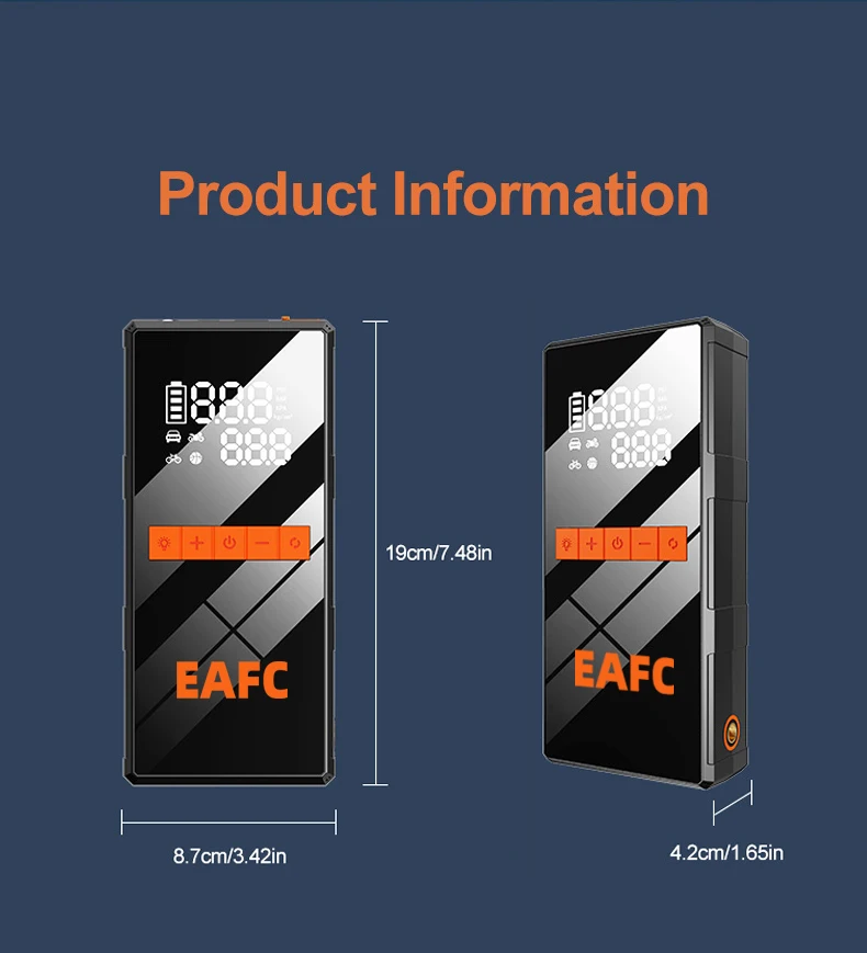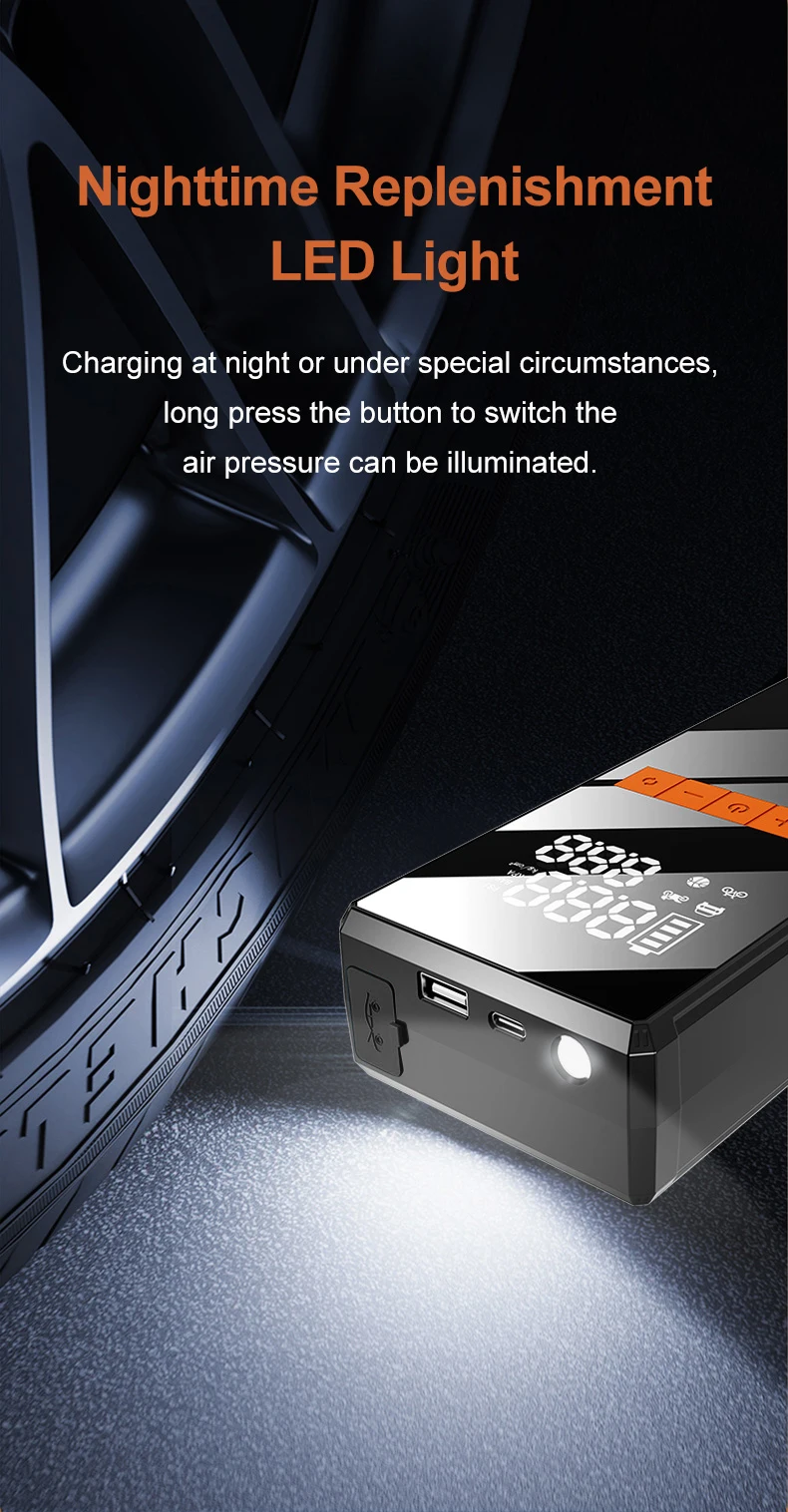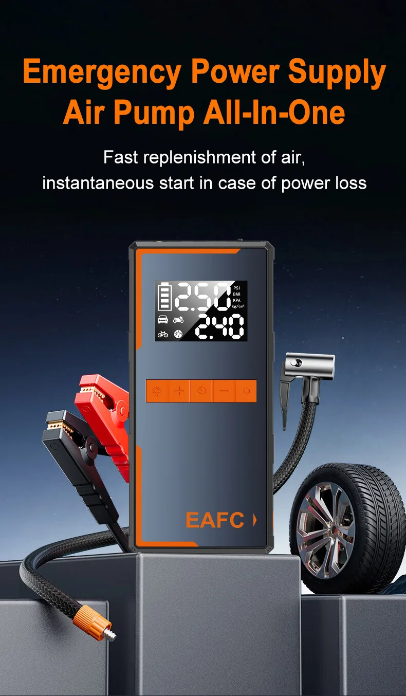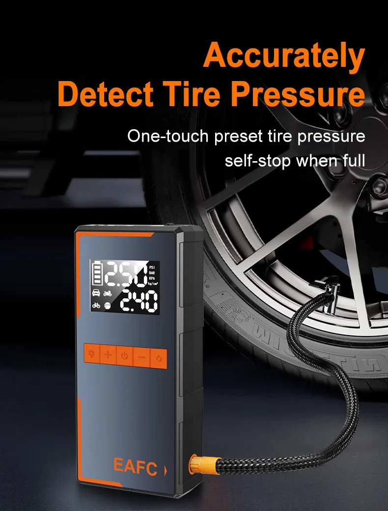EAFC 4-in-1 Car Emergency Jump Starter 1200A Peak Current 150PSI Air Pump Tire Inflator Power Bank Booster Multipurpose Tool