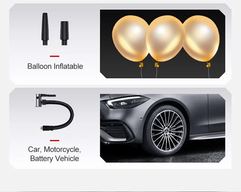 • Compatible con  globos, pelotas deportivas, bicicletas, autos, motocicletas y vehículos a batería .