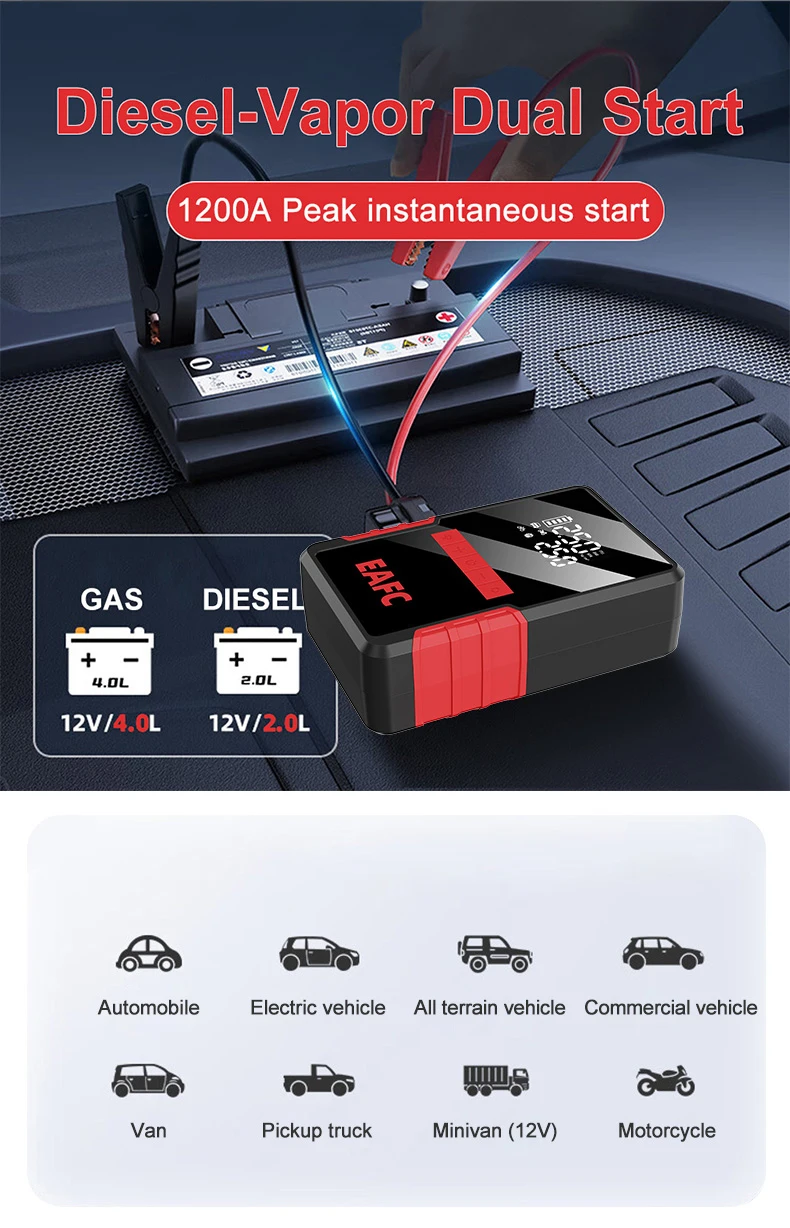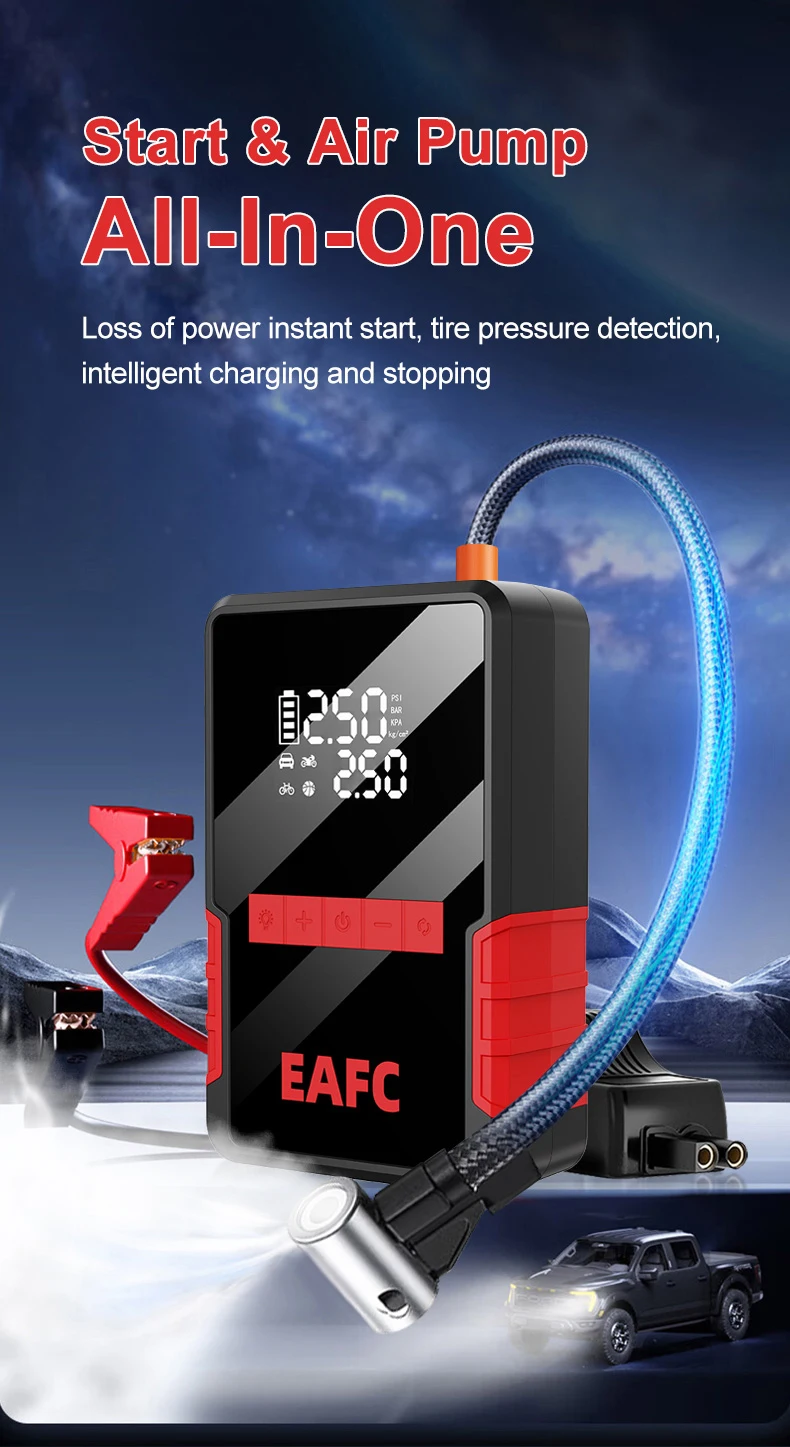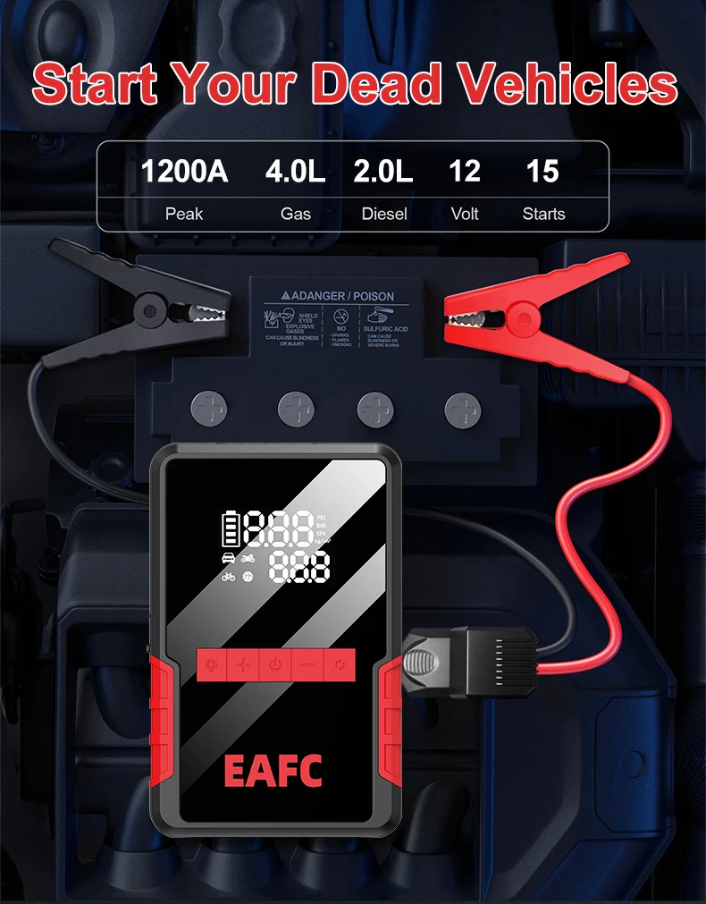 Arrancador de batería de coche FAEC 1200A, compresor de aire de 150 PSI, 4 en 1,
