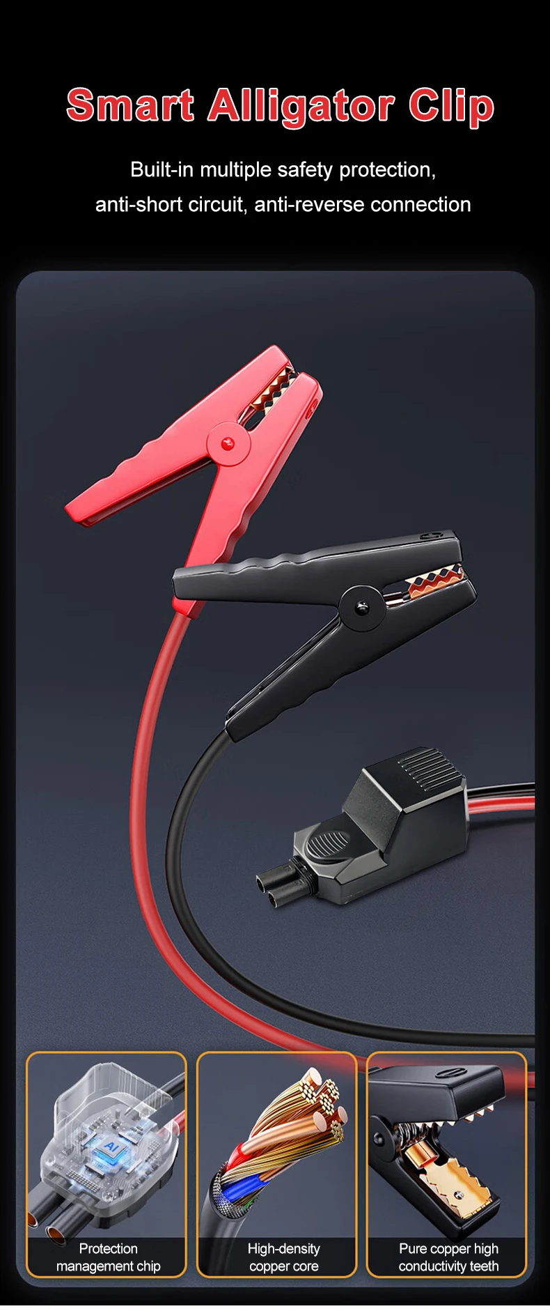 • Corriente máxima de 1200 A  y  corriente de arranque de 600 A  para revivir  vehículos parados  (motores de gasolina/diésel de hasta  4,0 L/2,0 L ).