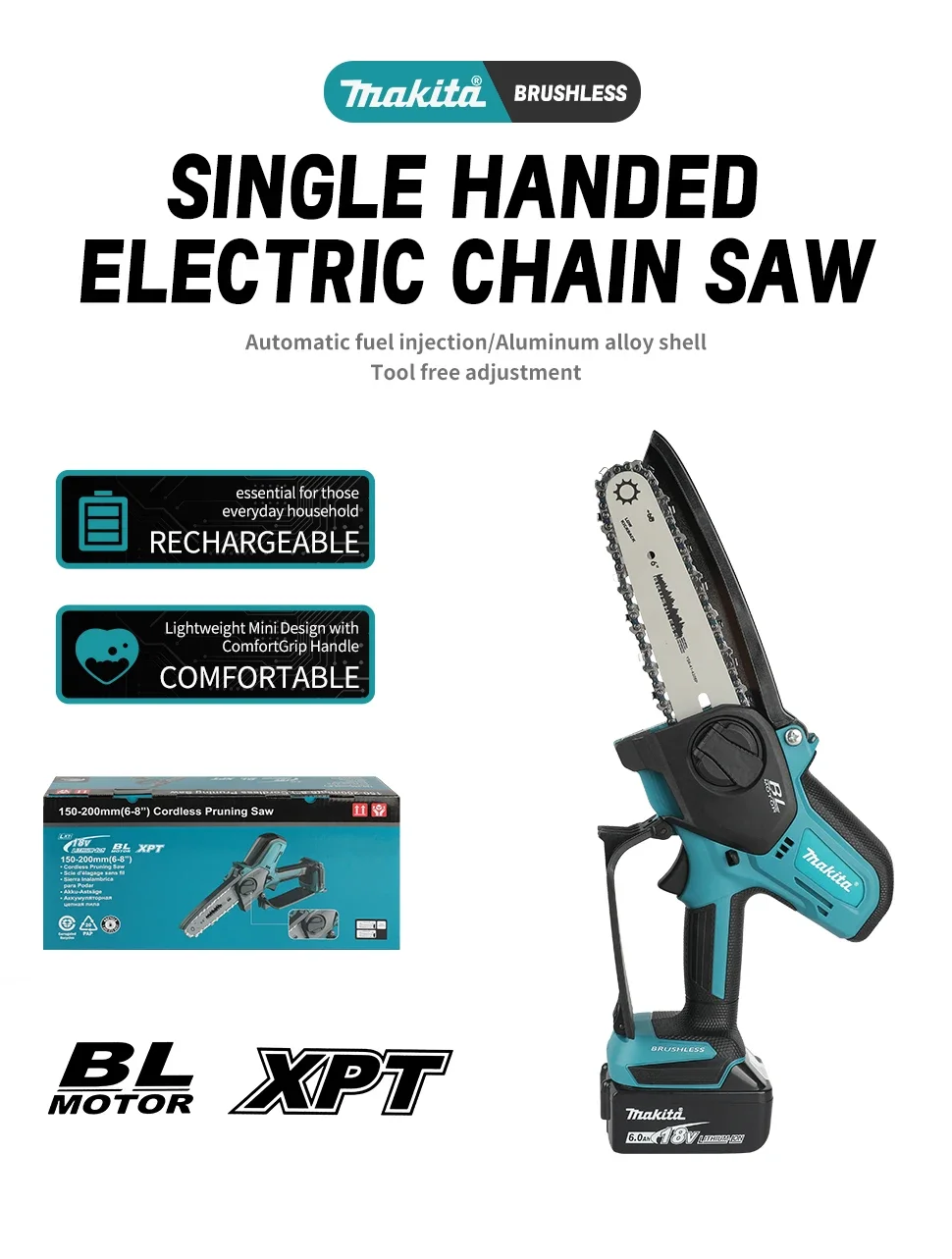 Motosierra inalámbrica Makita de 18 V sin escobillas, 20 mm de recorrido
